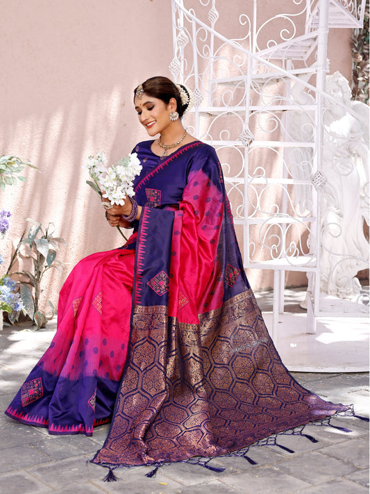 Opulent Pink and Coral Silk Saree with Intricate Zari Work