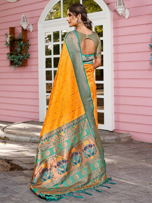 Splendor Orange and Coral Silk Saree with Intricate Zari Work