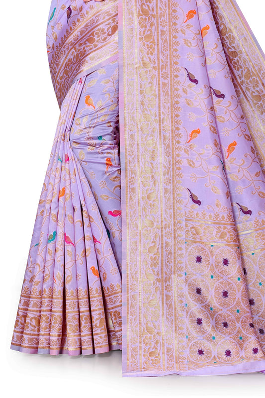 Soft Paithani Silk Saree with Gold Zari Weaving Motifs