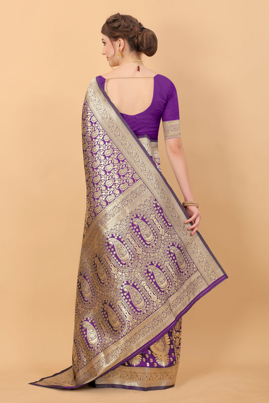 Purple Color Soft katan silk saree with copper zari weawing design and Rich Zari weawing Pallu with Unstiched Blouse piece.