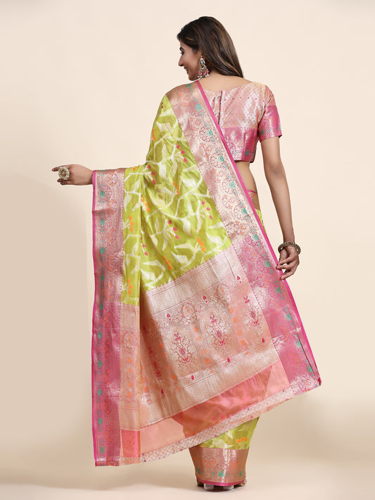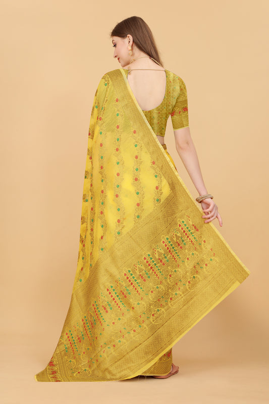 Soft Organza Silk saree with Meenakari weawing design and Rich Zari weawing Pallu with zari weawing border